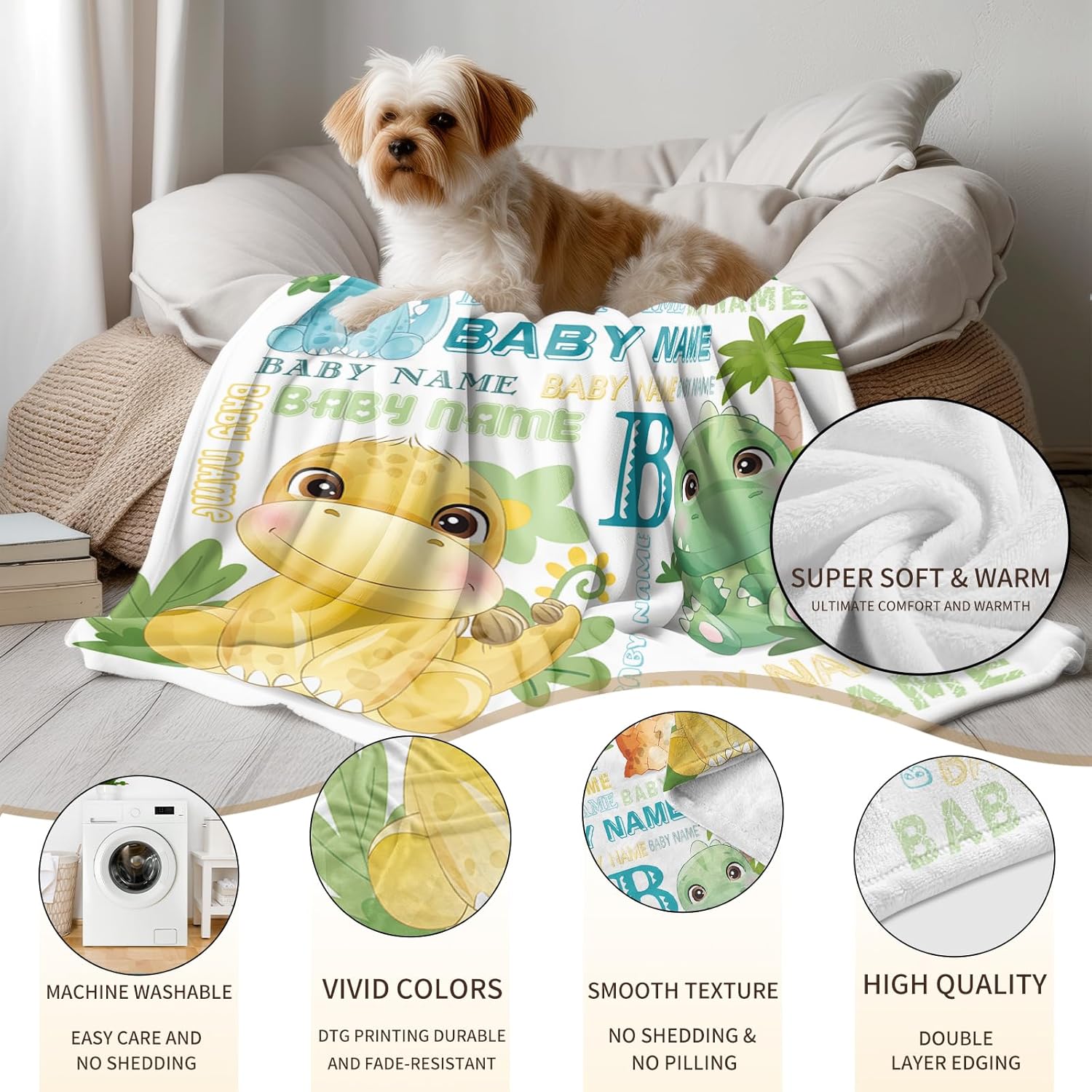 - Personalized Baby Blanket -- Custom baby blanket with name crafted from 100% premium anti-pilling, hypoallergenic fabric with a plush higher-density wool blend for superior softness and cozy thickness. Each custom-named blanket is safely machine washable or gentle hand wash in cold water. Our advanced HD printing technology preserves photo clarity and color vibrancy through countless washes, using odor-free inks that stay ultra-gentle on delicate skin.