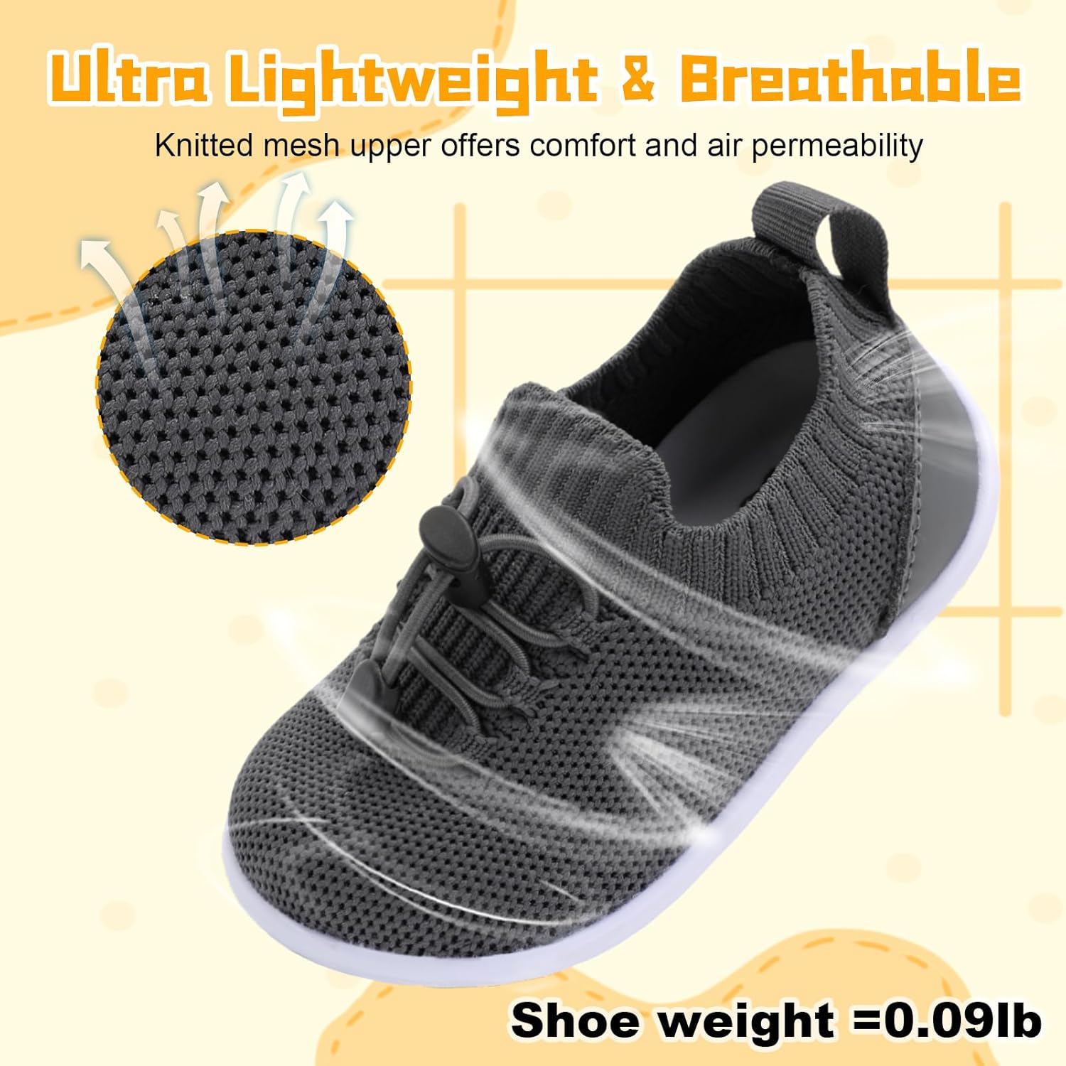 • Upper:Knitted Mesh Upper offers comfort and air permeability,has excellent breathability,moisture wicking function,and keep baby's feet dry and odorless.Super Soft,Breathable and Comfortable fit all the year