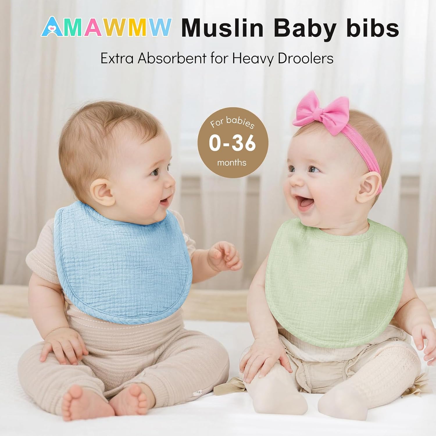 AMAWMW Muslin Baby Bibs for Unisex Boys Girls 6Pack Baby Bandana Drool Bibs Adjustable Newborn Bib for Drooling & Teething