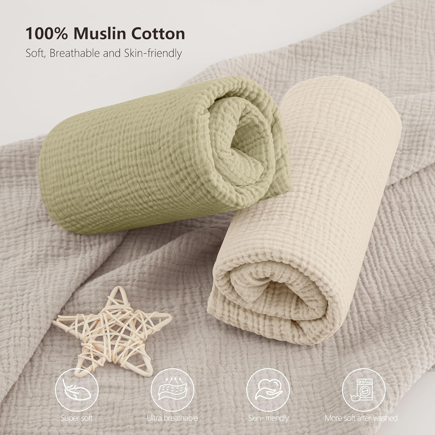 - EASY CARE - Our crib sheets are fully machine washable and can be tumble dried at low temperatures. With every wash, these muslin baby sheets become even more soft. The set ensures there's always a fresh sheet handy, contributing to a peaceful and better sleep for your little one.