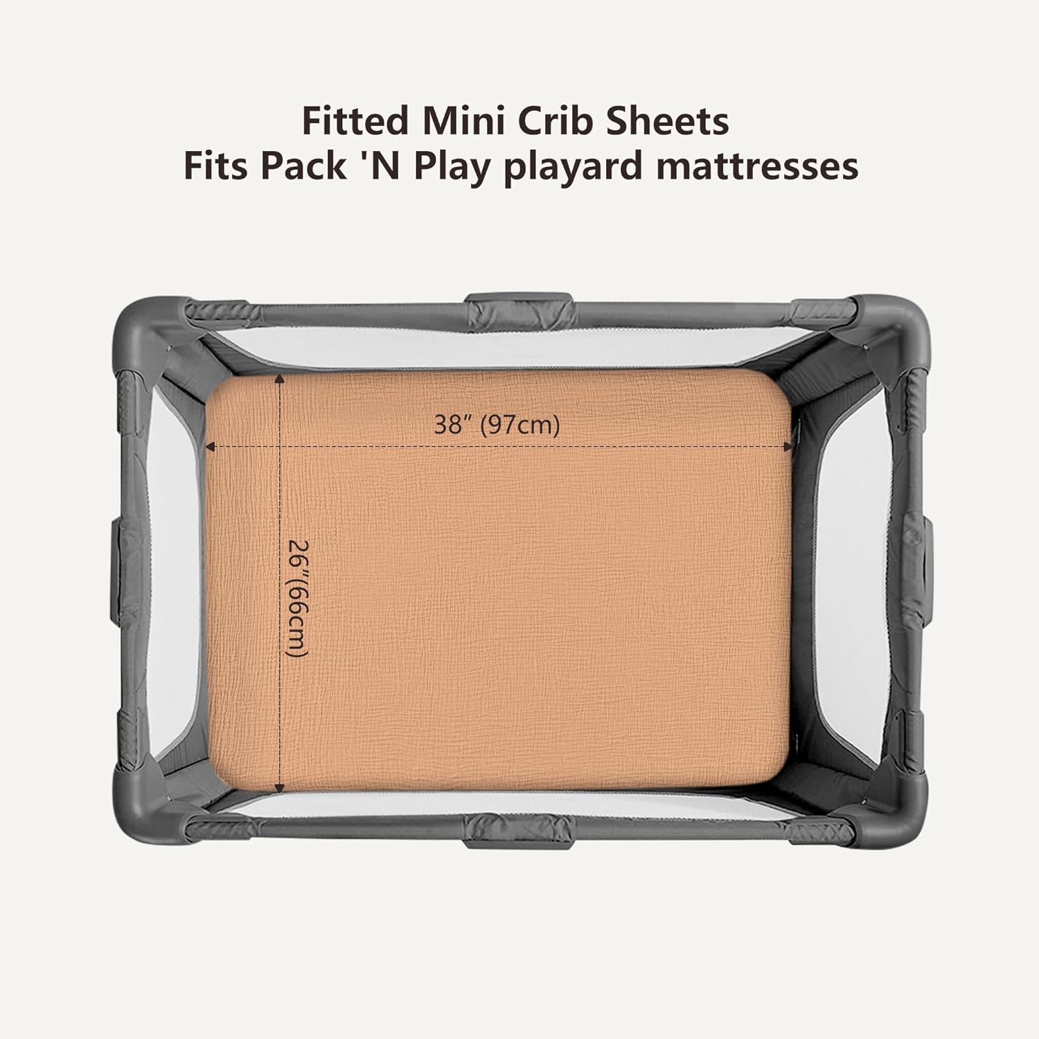 Bearmoss Muslin Mini Crib Sheets for Pack N Play Mattress - 100% Cotton - 38"x24" Soft Breathable Playard Baby Crib Sheets Neutral for Boys Girls - 2 Pack (Brown Moon)