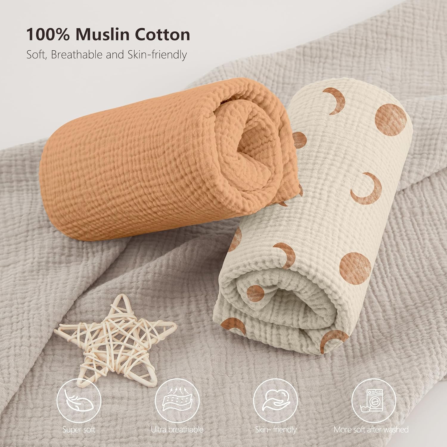 - EASY CARE - Our crib sheets are fully machine washable and can be tumble dried at low temperatures. With every wash, these muslin baby sheets become even more soft. The set ensures there's always a fresh sheet handy, contributing to a peaceful and better sleep for your little one.