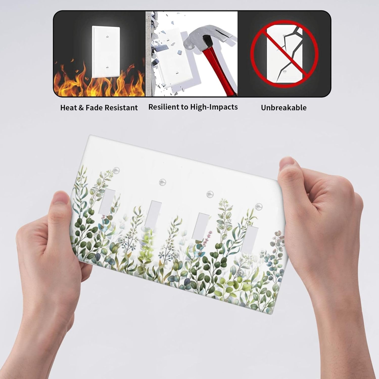 Green Eucalyptus Leaf Plant Herbs Springnature Light Switch Covers Quad Toggle Electrical Faceplate 4 Gang Wall Plate Decorative Switch Plates for Bed Room Living Room Decor
