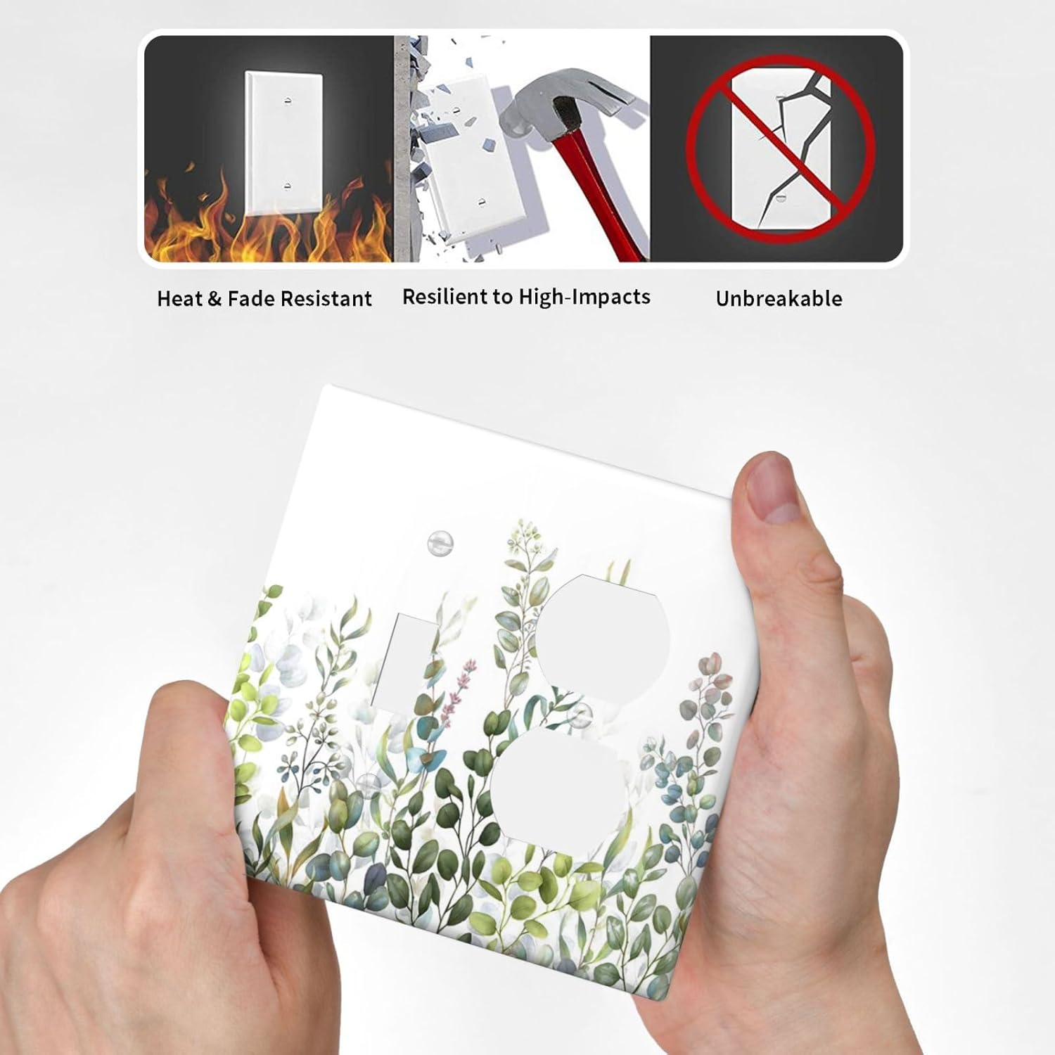 Green Eucalyptus Leaf Plant Herbs Springnature Wallplates 1 Toggle 1 Duplex Switch Plate Electrical GFCI Faceplate Decorative Light Switch Covers for Bed Room Living Room Decor