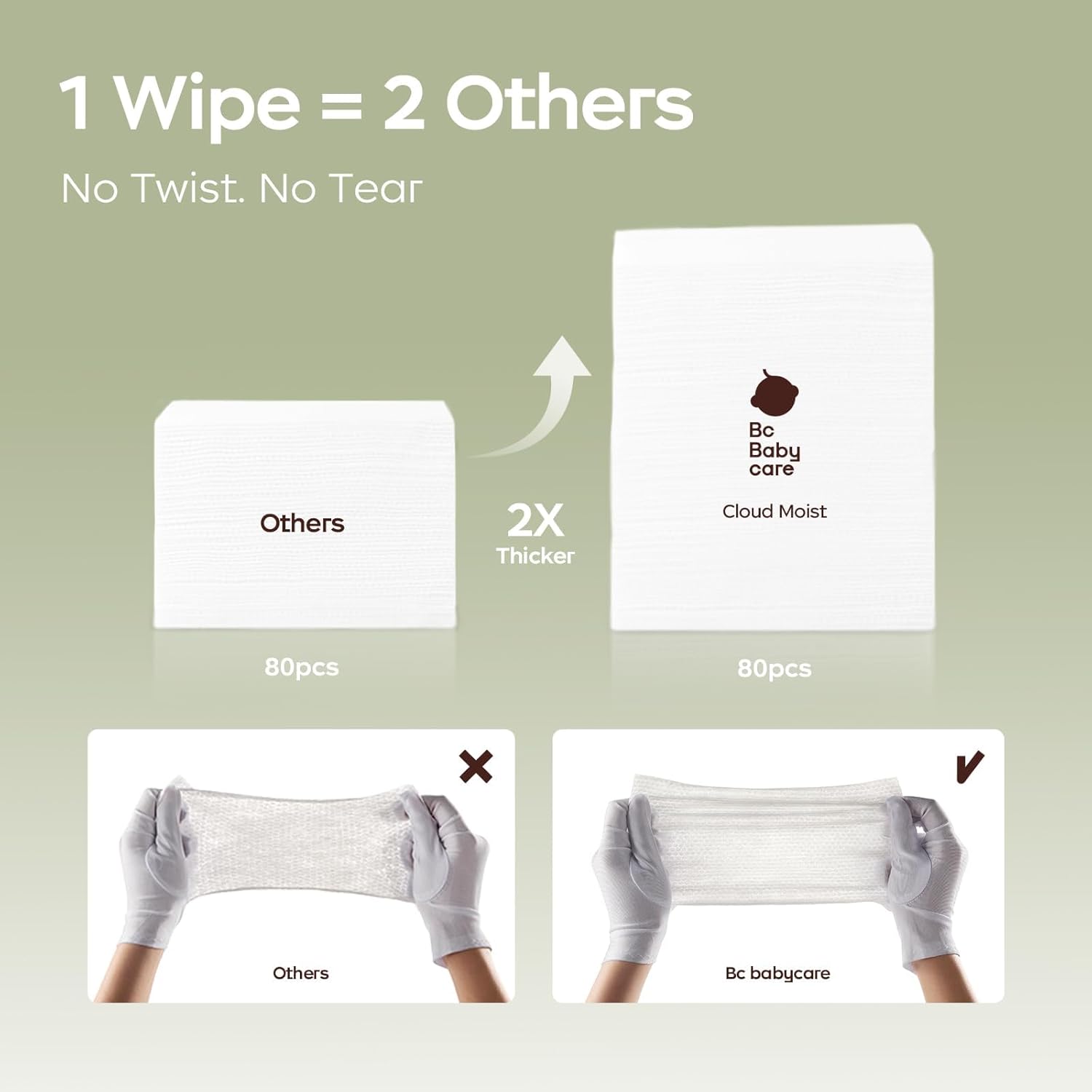 Bc Babycare Cloud Moist Wet Baby Wipes, Thick & XL, 99% Water, Ultra-Hydrating, Unscented, Hypoallergenic for Sensitive Skin, Biodegradable, 6 Flip-Top, 480 Count